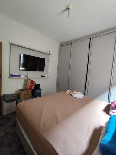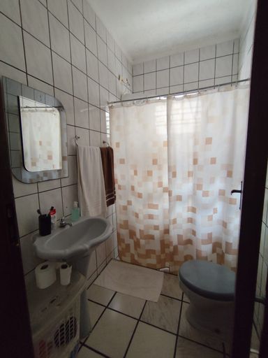 São 2 dormitórios, sala, cozinha, banheiro social e área de serviço com banheiro, além de garagem para 2 carros.
